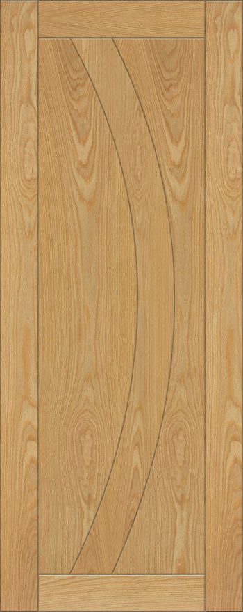 This prefinished, modern oak door has a clean and minimal style making it ideal for any type of room. The North American crown cut veneers make this one of the boldest doors in the Deanta Collection.