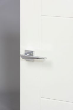 Forme Naxos Lever Door Handle on Minimal Square Rose – Polished Chrome