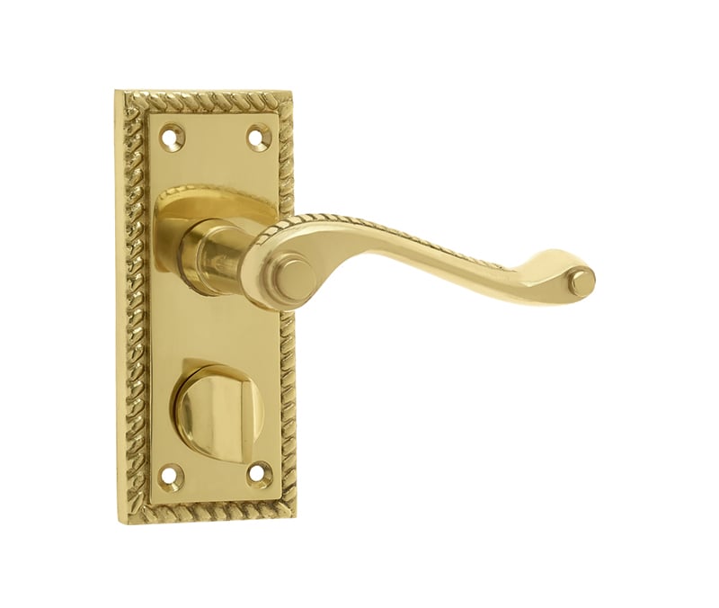 Georgian Suite Door Handle on Privacy Plate Polished Brass