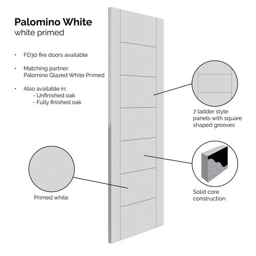 A Sleek, Modern design, The Palomino door combines funcionality and style. Supplied with a primed face allowing you to chose any final colour to match your interior.