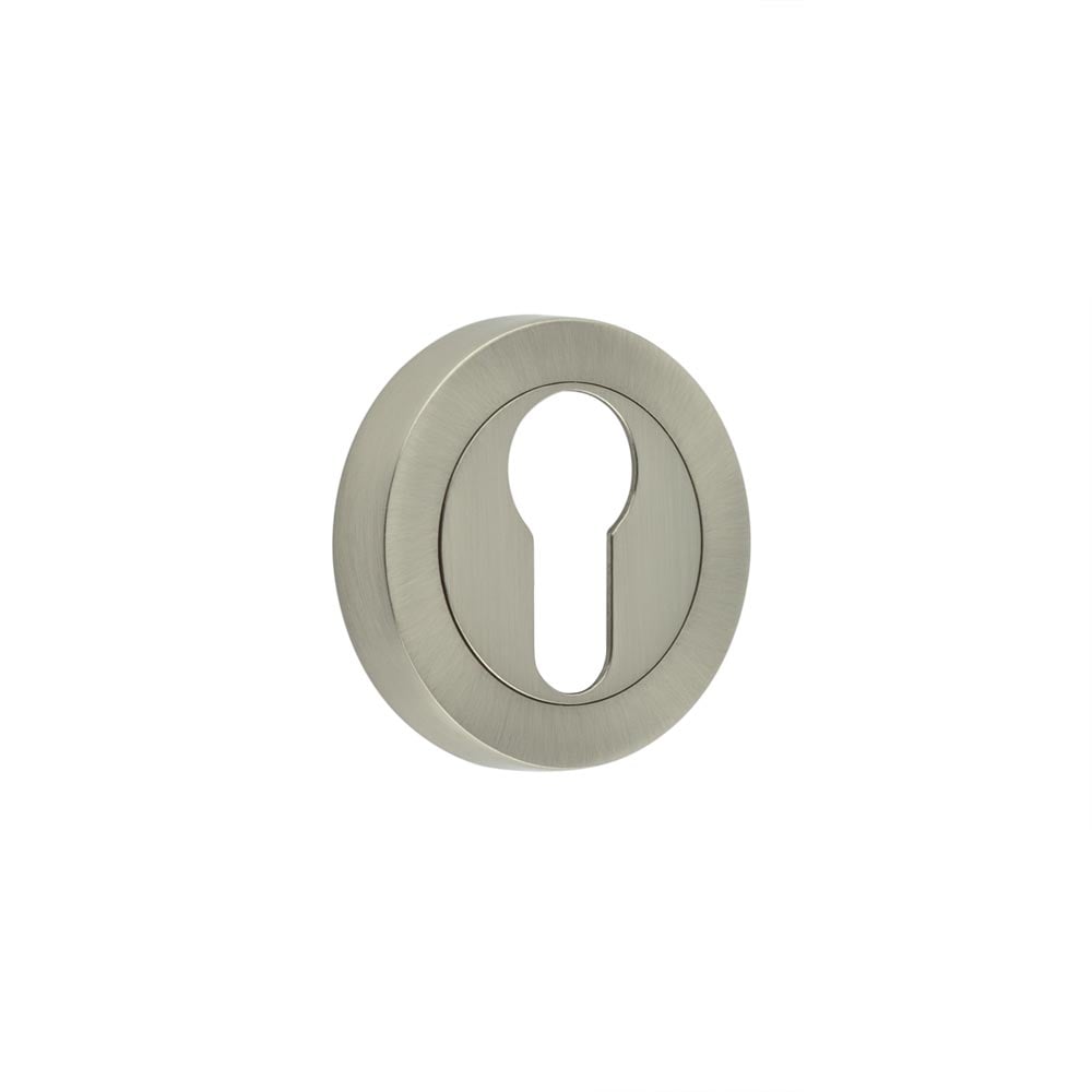 Jedo Designer Euro Profile Escutcheons on 50mm Round Rose Satin Nickel