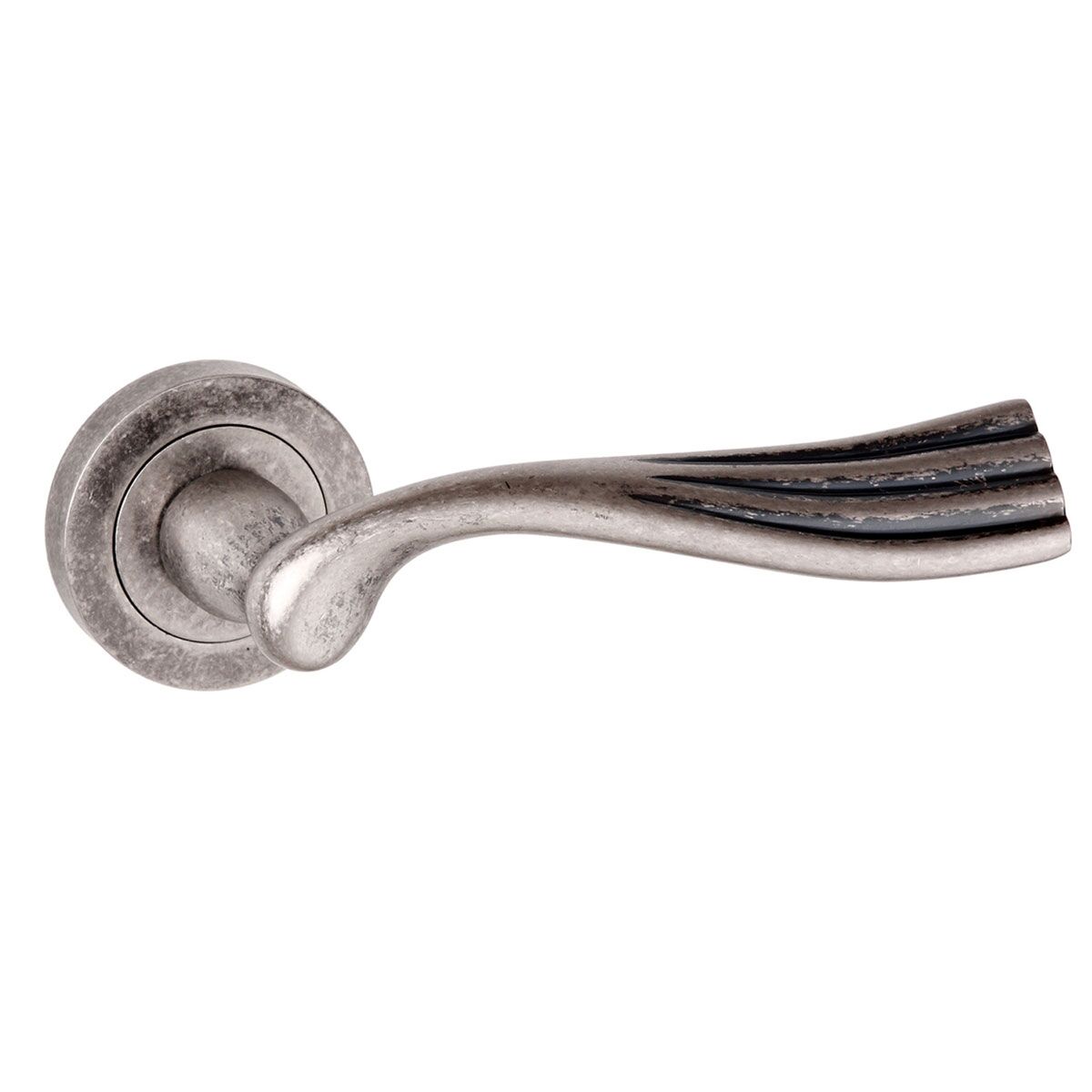 Old English Richmond Lever Door Handle on Round Rose – Distressed Silver