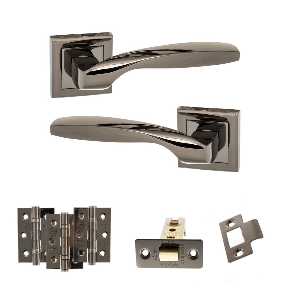 STATUS Oklahoma Door Handle Pack (Latch Set – 3″ CE Latch, 3″ Fire Rated Hinges x3) – Black Nickel