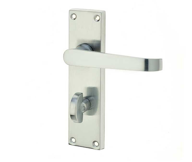 Victorian Straight Door Handle on Bathroom Plate Satin Chrome